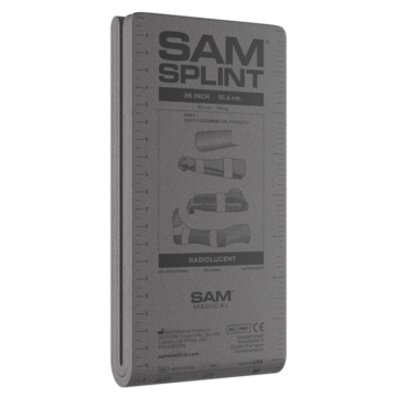 The SAM® Splint 36″ Flat Charcoal is a lightweight, flexible immobilization device designed to temporarily stabilize extremities after traumatic injury. Utilizing the C-Curve™ Principle for strength, it can be easily shaped, cut to size, and secured with wrap or tape for versatile, reliable support in emergency care settings.